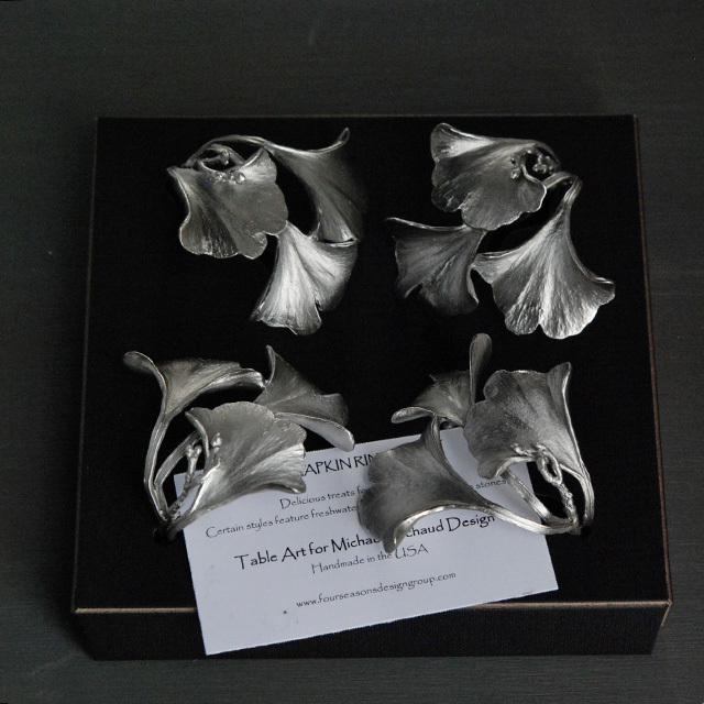 ナプキンリング イチョウ 4点セット (ピューター)  / Michael Michaud( CA-NR9410AP )