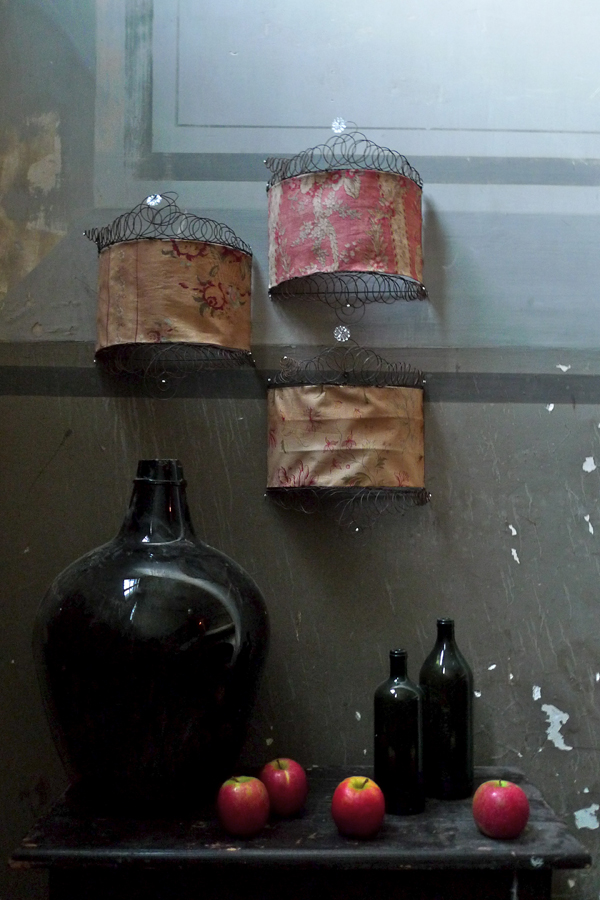 アンティークワイヤーとアンティークファブリック、クリスタルを使った、